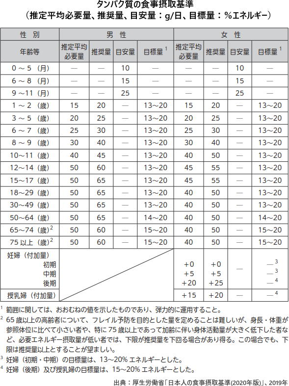 この改訂では、推定エネルギー必要量などの変更に加えて50歳からのタンパク質の目標量が引き上げられました。厚生労働省も中高年のタンパク質摂取に注目したということです。