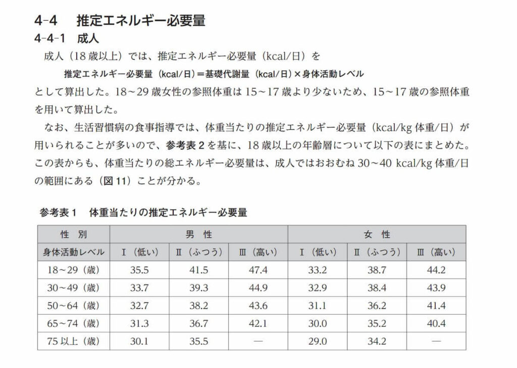 ただし、注釈にも書いてある通り個人によって身長体重が異なりますし、日中のエネルギー消費量も異なります。